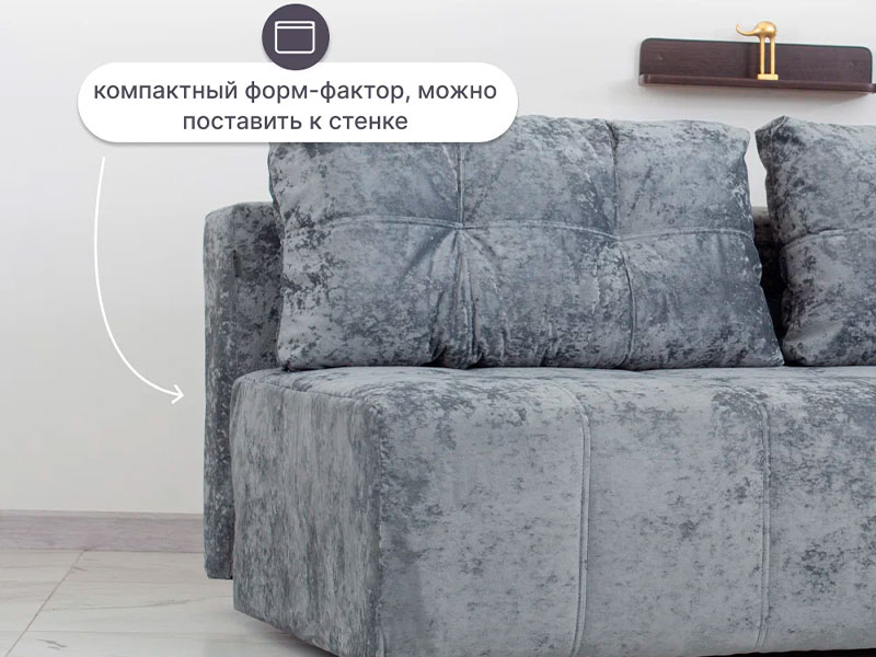 Диван оборудован удобным спальным местом, которое легко трансформируется из положения для отдыха в полноценное спальное место. Это особенно актуально для небольших квартир, где каждый квадратный метр на счету.