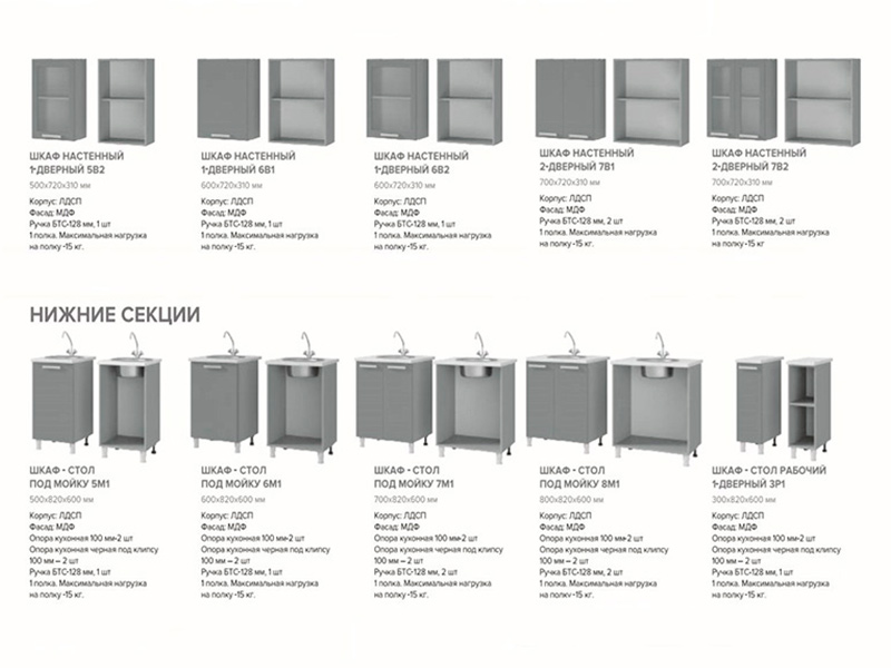 Кухня Афина айс Тумба 6М1 корп белый, фасад 6М1 Афина айс, без столешницы