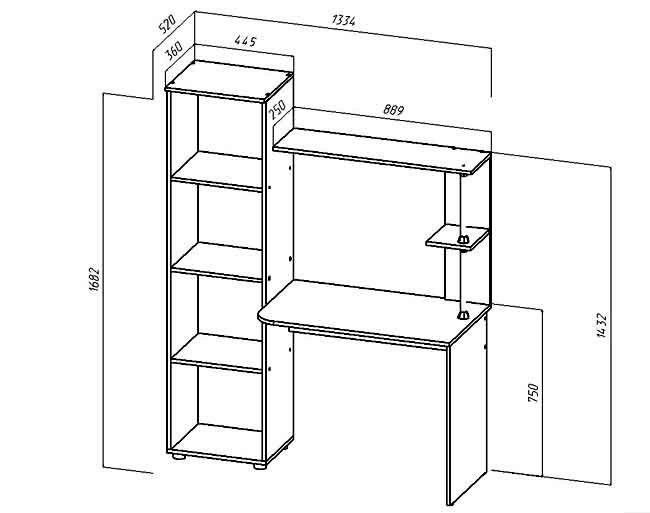 Габариты 1334(Ш) х 520(Г) х 1682(В) мм.